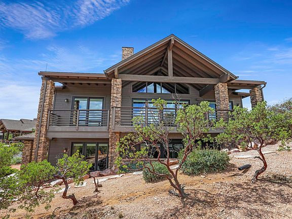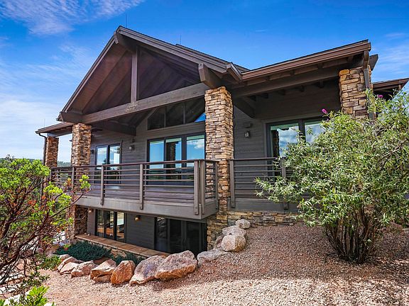 This stately home features numerous customized upgrades, among them, a new HVAC system & duct work; a new deck; major A/V hardware & software enhancements have been continuously added during the past years (most recently in 2023) Adjacent lot which will provide add'l privacy & unobstructed scenic mountain view is available via a separate listing. Stunning, spacious & magnificent mountain home with spectacular, vista views of the Granite Dells & Mogollon Rim! Enter this beautiful home to be greeted by a great room with vaulted wood ceilings, stately fireplace, beautiful craftsmanship throughout & further featuring the master suite & comfortable den/study/office on the main floor. Transition via a custom elevator to the lower level to enjoy the ambience of an additional great/recreation room & its own wet bar & wonderful library to enjoy a ''good read'' while sitting by a cozy fireplace & a separate exercise room.