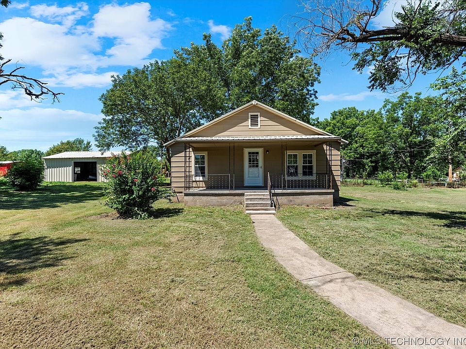 Convenience of living in town and located in the country! Nice and clean, 2 bedroom, 1 bath home located on approximately 2.44 acres right on the edge of Bartlesville. 3 storage buildings, 2 shops, 1 barn. Water supply lines have been replaced, new electrical panel, new paint, flooring, trim and fixtures. Livestock allowed
