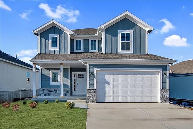 BRAND NEW Two-Story home with a sales price in the 300k's!! This 3b/2.1b house boasts gorgeous hardwood floors on the main level with an entertainers dream kitchen with white cabinets and quartz counter tops. Lower level is unfinished. House sits on street with cul-de-sac! Convenient highway access, minutes away from downtown KC, Zona Rosa Shopping Center, KCI Airport Smithville and more! Located within the Staley HS/NKC School District.
