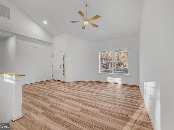 TO BE BUILT! This custom-built residence boasts over 1,250+ square feet of finished living space, offering an ideal blend of functionality and luxury. The open floor plan features a cathedral ceiling in the kitchen, dining, and living areas, complemented by luxury vinyl plank flooring throughout. Additional amenities include 9-foot ceilings, ceiling fans, wood shelving in closets, and heating and air returns in each room. The property comprises 3 bedrooms, including a primary bedroom with an attached bathroom, walk-in closet, as well as a 5-foot walk-in shower. Two full baths. The kitchen is equipped with quartz countertops and stainless steel appliances, and a dining area leads out to the 12x12 rear deck. An attached garage opens into the laundry room/mud room/pantry, which includes cabinets, quartz countertops, and a sink. The property also features a full, unfinished walk-out basement with rough-in plumbing for a potential third bathroom. There is amble room to finish the basement for additional living space or it makes a great storage area. Built with 2x6 exterior walls for enhanced energy efficiency, this home is situated on 3.48 acres, accessible by sidewalk leading to the 6x16 covered front porch.