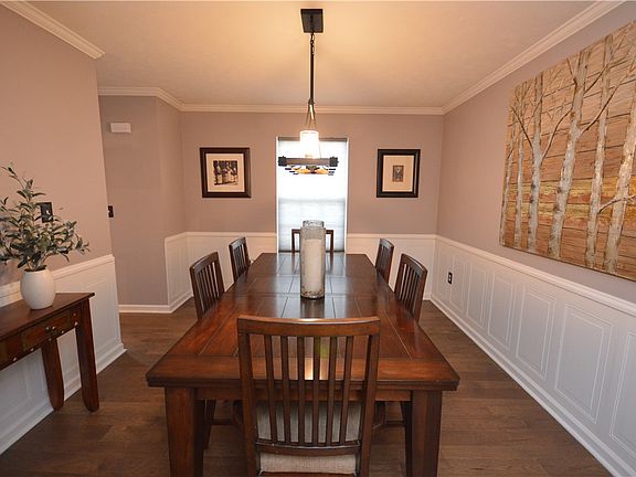 Beautiful contemporary home on quiet cul de sac. First floor has office/den dining room, eat in kitchen. open to large family room, sliding glass doors lead to deck, yard, and pool. yard is fully fenced. Kitchen features gray and white cabinets, stainless appliances, and large pantry. Second floor has large master bedroom with ensuite full bathroom, large walk-in closet. Laundry on second floor. 3 other nice sized bedrooms. full bath in the hall. lots of windows for wonderful natural light. Basement not finished, used for storage. It has plenty of room for toys and more. 2 car garage. driveway for more parking. woods below the yard provide a very nice view. home is close to the famous Sarris Candies - yum!!