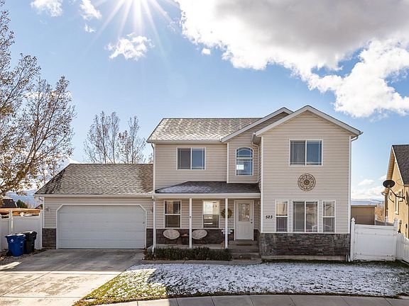 This gorgeous dream home tucked away in a quiet cul-de-sac is ready for you! This beautiful 5 bedroom home has been very well maintained and cared for, with fresh paint and new blinds!! There is a cozy porch out front that is covered. Inside you will find a beautiful fireplace in the living room to keep warm during cold winter months. Relax in the backyard on the large deck while looking at the amazing view of the mountains and sunsets. The kitchen boasts lots of counter space with all new appliances. The fully finished basement includes a wet bar for entertainment with a wine cooler and stools to stay or turn it into a small kitchen area for multigenerational living. The laundry room is right next to the master suite with a large walk-in closet for your convenience. There are shelves in the garage and a large storage shed in the backyard for that extra storage. Don't miss out on it!!