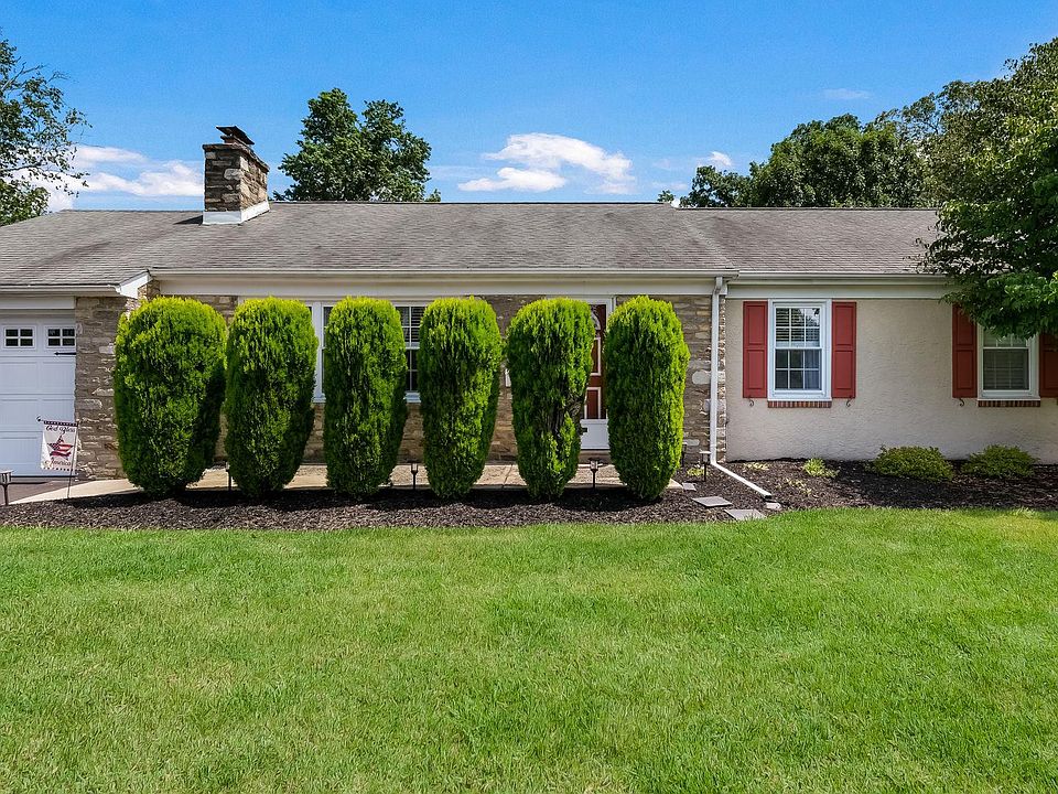 Hurry to see this 3 bedroom 1 1/2 bath Ranch home on a 1/2 acre lot. Upon entering you will see the amazing condition and care this home has received over the years. The living room is bright & spacious, it features a wood burning fireplace, ceiling fan and built-ins. Next you will notice the New Eat in Kitchen with plenty of white shaker cabinetry and granite counters. The dining room wall was removed to provide a much more inviting open concept. The kitchen features stainless steel appliances, including the range, built in microwave, dishwasher and the kitchen refrigerator is included. The door just off the kitchen leads to the mudroom. From here you have access to the one care garage, the 1/2 bath and the rear covered patio. The garage has a garage door opener, insulated doors, and room for storage. The slate patio has an awning, ceiling fan and looks like a great place to hang out and grill. The mudroom was once the laundry room, the included washer and dryer are now in the basement, but if needed the plumbing is still available on the main floor. The west wing of the home features 3 bedrooms and the full bathroom with tub/shower. The bedrooms all have wall to wall carpeting and ceiling fans. The full basement features interior and exterior access through a Bilco door. Other features of the home; New Central Air was added in 2021, new driveway, new water heater, newer heater, recessed lighting, new rear shed, 200 AMP electric service, newer exterior doors and the workbench in the basement can stay! Come check this home out sooner than later, I am sure you will be glad you did...