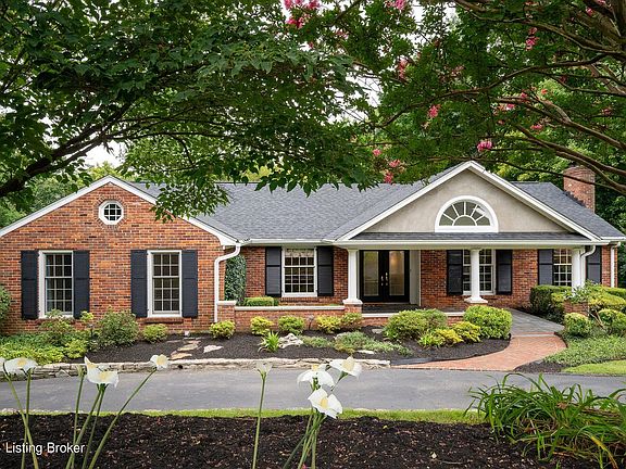 Wonderful brick home with a first-floor primary suite, spacious walkout lower-level and beautiful pool situated on a quiet .82-acre lot with lovely landscaping and a meandering creek at the rear of the property. This home lives large on the main level with a spacious great room, featuring a wall of windows, that opens to a wraparound deck; kitchen open to a breakfast area and dining room; living room and study/office. In addition to the first floor primary, there are two additional bedrooms, a full bath and a half bath on the main level. With more than 1,765 finished square feet the spacious walkout lower level features a family room, two full bathrooms, and two additional rooms that offer many possibilities. For fun and entertaining there is a small kitchenette conveniently located in the lower level near the pool and patio area. This special property offers the best of both worlds: a quiet and comfortable neighborhood sanctuary that's also just minutes from NuLu/Downtown and the great dining and shopping options of both Crescent Hill and St. Matthews. Don't wait on this one! The dining room chandelier does not remain with the property.