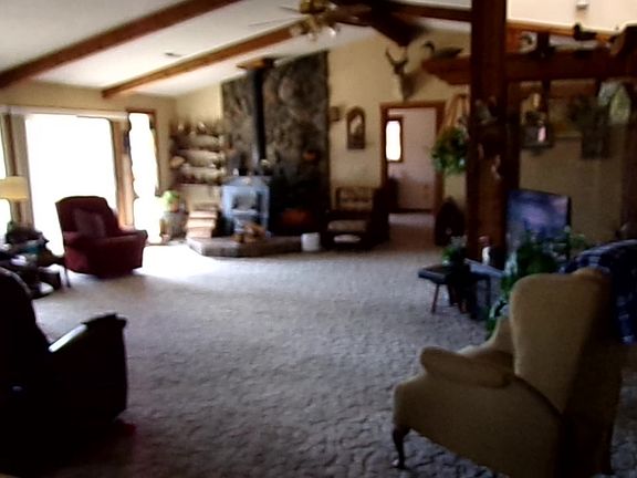 Beautiful, private 74 acres. Great wooded view with the lake front to enjoy. Lots of wildlife, hunting, and hiking. Close to town, but secluded , no traffic private road. Cut your own wood for your fireplace. The rambling one level earth sheltered home is very spacious and open to the large windows that overlook the lake. Big kitchen and big dining room with open ceilings with large beams.