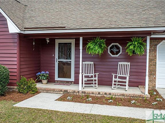 Lovely ranch gem! The rocking chair front porch leads you into a welcoming comfortable living room with wood burning brick fireplace. Wander around the corner and get cozy with your coffee in spacious sunroom and add fresh blueberries to your pancakes hand-picked from the backyard. Kitchen has upgraded tiling & quartz countertops. Laundry room next to the kitchen is large enough to serve also as a pantry. Beautiful luxury vinyl wood flooring through-out most of the home, with three generous bedrooms. Attic boasts of plenty of room for all your seasonal decorations and more! This home is located on a sought-after corner lot of .75 acres - perfect for cookouts with family and friends! Workshop/storage shed for all your lawn tools. So much charm to this ranch home with private 80 ft. well. Great location! Minutes from Pooler shopping, doctors, entertainment, and restaurants! Freshly painted inside and out, you will find a picture-perfect home ripe for the picking! Will not last long!