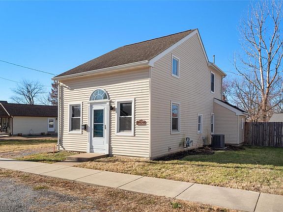 Introducing a charming historic home w/2 bedrooms & 2 bathrooms. This gem features a cathedral ceiling that bathes the interior in natural light. The galley kitchen underwent a stylish transformation in 2020, boasting new cabinetry, sink, countertops, and flooring. The main floor showcases new flooring throughout and has been freshly painted. The full bath has been updated w/new sink/cabinetry, lighting, & flooring. Upstairs, you'll find a loft featuring the master bedroom with a peek-a-boo window overlooking the living room, a spacious 6 x 12 walk-in closet & a 3/4 bath suite. The unfinished basement hosts a washer/dryer & humidifier, all staying. Additionally, an electrical upgrade to 200 amps ensures modern convenience. Enjoy outdoor living on the deck, installed in 2020, and make use of the recently sided shed from 2022. Fence installed in 2018, expanded in 2020. New HWH & sump pump installed in 2019, making this historic home a comfortable & convenient haven. Roof 2008.