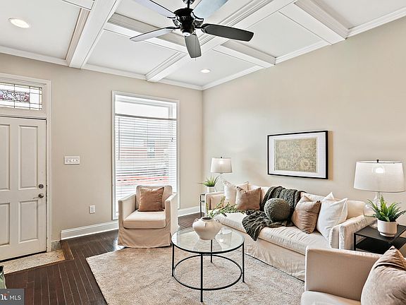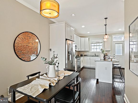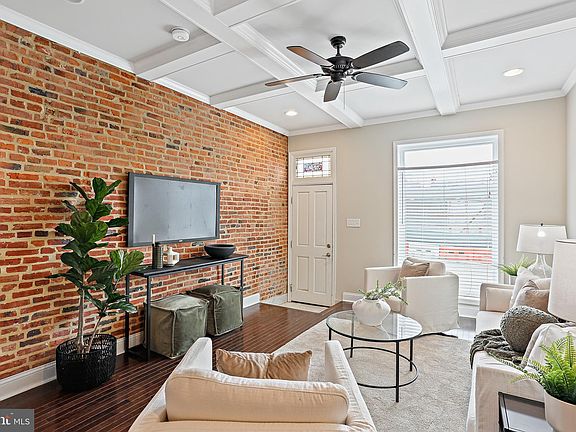 **Freshly Staged with 10k price improvement and brand new carpet installed in basement** - Welcome to 523 S Linwood Ave! Move right into this beautifully maintained 4 bedroom, 2 full bathroom row home in the sought after Canton community! Fully renovated in 2015 with meticulous attention to detail, this home seamlessly blends classic charm and character with modern features, including original brick walls and hardwood floors throughout the home. Step inside to discover a generously sized living room with coffered ceiling. Enjoy the open concept kitchen/dining/living space while entertaining friends and family. The kitchen boasts granite countertops, stainless steel appliances, a gas range and an island including seating for two! The dining area is right off the kitchen while the living space is perfect and spacious for all your gatherings. Upstairs, the primary suite awaits, offering tall ceilings and a double closet for all your personal storage needs. The primary bathroom includes a dual vanity and a sizable walk-in shower with subway tile. The second bedroom located in the rear has access to the rooftop deck with amazing views of the Baltimore cityscape including Patterson Park! Downstairs, the fully-finished lower level provides additional living space with two bedrooms and a second full bathroom. Ample storage options and a full size washer/dryer round out the lower level. Located just steps away from Patterson Park, enjoy city living at its finest with the convenience of a private parking pad in the rear of the home. Explore all that Baltimore and the popular Canton neighborhood have to offer right outside your door! This home offers a perfect blend of comfort and convenience for a fulfilling lifestyle. This one will not last long, schedule a showing today! Additionally, there is approximately 1 year remaining of CHAP Tax Credit that will convey to the next buyer.
