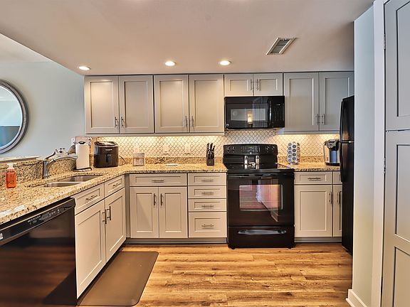 "WOW" is the thought that comes to mind when you walk into this extravagant four bedroom three bath condo in the very popular and family friendly Windemere Resort. This 5th floor North corner unit has to be seen to be fully appreciated and has recently been remodeled from top to bottom. It is NOT on a rental program and is only used for a few weeks a year so it looks great with no "wear and tear". It has many up-grades including, but not limited to, Luxury Vinyl Plank floors, granite c-tops (kitchen and baths), dual sink in Master Bath, tiled walk in shower in Master and much more. Windemere has all the amenities one desires in an oceanfront condo including a 2nd floor oceanfront recreational area that includes a work out room , sauna, and lounging area with plenty of seating for the large screen TV available to owners and guest . The stackable washer and dryer convey as this condo is being sold completely furnished. All you need to do is bring your clothes. Great Rental potential or a great primary or second home "at the beach". Schedule a showing or virtual showing today. You won't be disappointed.