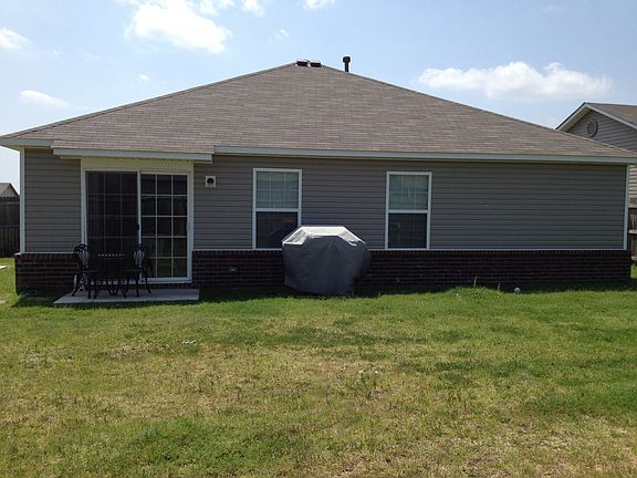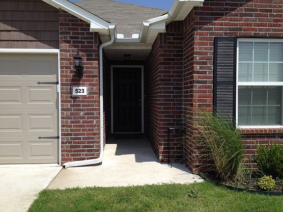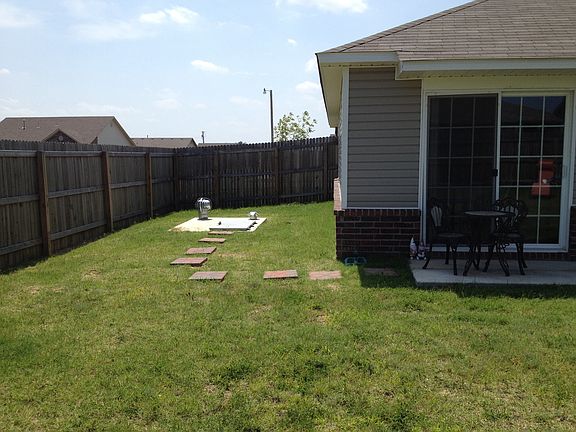 Newer three bedroom two full bath home. Home was built in 2012. Very nice. Has outdoor storm shelter and fenced yard. Great neighborhood. Refrigerator included move in date is flexible