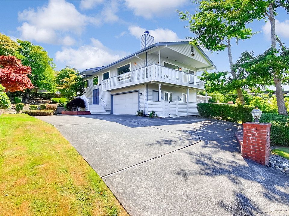 Welcome to your dream home w/ breathtaking views of the Puget Sound, Vashon Island, Olympic Mountains, and stunning sunsets! This beautiful 3-bedroom, 2.25-bath home offers a spacious living and dining room-perfect for entertaining or cozy nights in. The stunning remodeled kitchen features lots of cabinets, 2 garden windows, quartz counters & high end SS appliances. The primary bedroom boasts a private deck, big walk-in closet, and a luxurious remodeled bathroom with a curbless tiled shower, dual sink vanity w/ quartz counters, heated toilet, and heated tile floors. Other features include extensive hdwd flrs,2 good size secondary bdrms, lots of storage, deep 2 car garage, patio & more incl the lg deck to soak in the spectacular views!