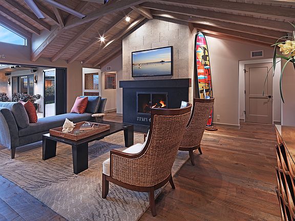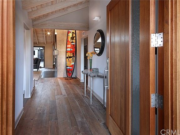 This exclusive "single story" gem in Newport Heights finally opens its doors and spreads its wings demonstrating a spectacular display of sophistication and customization. The 2496 sq. ft. open floor plan makes its debut nothing short of perfection. Upon entrance through the oversized teak door you are greeted with beautiful reclaimed barn wood floors that flow into a very open living area, complete with fireplace, chef inspired kitchen, vaulted open beam ceilings. 20 ft. La Cantina Bifold doors open into a magnificent outdoor living space. The indoor/outdoor floor plan allows you to prepare a delicious meal and entertain all at the same time. In the courtyard, you will find a built in BBQ, water and fire feature, outdoor TV, state of the art sound system, and smoke house. Long day? Enjoy a nice bottle of wine and a fine cigar from the climate controlled wine and humidor room, housing over 800 bottles of wine. Unwind a little more in the Media Room, complete with 4K Ultra Sony TV, 9.2 Atmos Surround sound system and 10' bifold doors that open to the front patio for a cooling breeze on a warm summers day. The home comes together with a Creston Home Automation System. Control temperature, lighting, sound, etc... from any hand-held device. There are endless brilliant custom upgrades at every turn. This property has gone through over 3 years of proficient remodeling. A true entertainer's masterpiece, the attention to detail will have you begging for more!