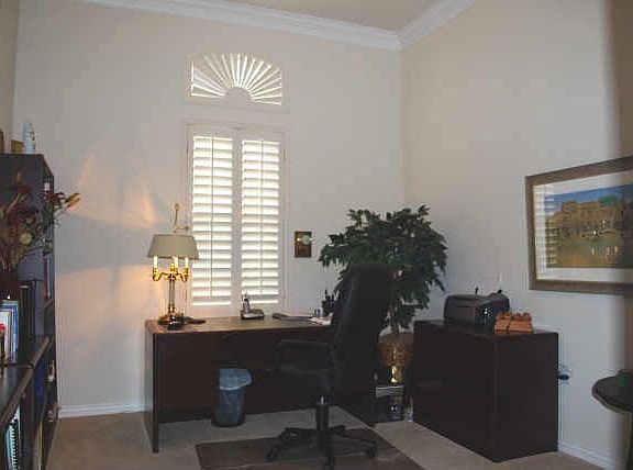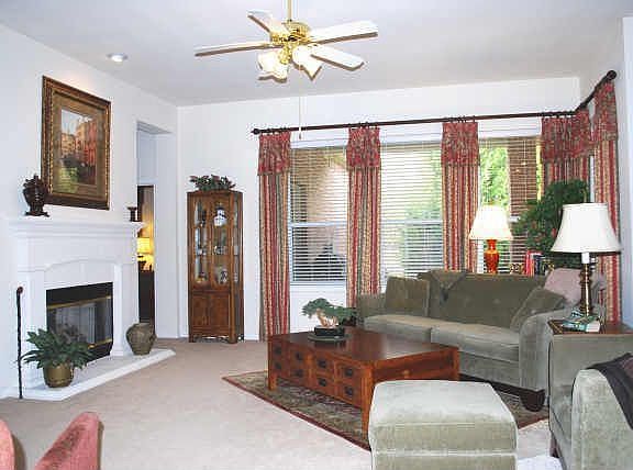 This home is a 10 - Hard to find 3-2-Large Living Room plus Study - Light & bright - Tile entry, hallways, kitchen/ breakfast, bath, & utility room. Study has doors for privacy - Crown molding in entry, formal dining & study - Great kitchen w-large pantry, island, gas cooktop, 42" raised paneled door cabinets, corian counters & breakfast bar - inviting Living Room has wall of windows overlooking back - master bath with tall counters, corner tub & large shower with seat. Bedroom 2 & 3 are connected with Jack-n-Jill bath with large shower. Home covered by home warranty. Refrigerator & cabinets in garage remain - Draperies in living room & master bedroom excluded - all custom cornices & rods remain - Active adult Community age 50+