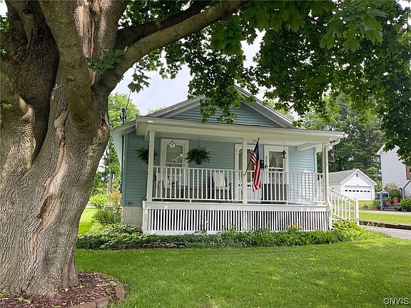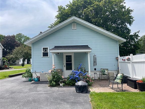 This Ranch is perfect! Living room with hardwood floors open to formal dining with hardwood floors! Gorgeous kitchen with newer creme cabinetry, granite counters and fully applianced. 2 nice size bedrooms - master is huge! No pictures of the 2nd bedroom....full of boxes! Updated 3/4 bath with walk in shower and tile surround, glass doors and vanity! 1st floor laundry with stackable washer and dryer! Covered front porch, covered rear patio and a re-built garage with a newer concrete pad and with electric door opener! Shed! Full basement, gas furnace (2022) and central air (2022), circuit breaker box with 150 AMP entrance! Thermopane windows! Great yard with beautiful perennials. A loved and well maintained home!