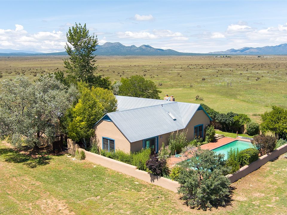 Immaculately maintained Horse and Cattle Ranch with tremendous views of the Sandia and Ortiz mountains. Only 45 minutes to the Santa Fe Plaza and equidistant to the Albuquerque International Airport, is home to this secluded 40-acre ranch. The ranch headquarters is home to the double adobe residence, swimming pool, barn, arena, roundpen, cattle chute, and cattle pens. The main house was thoughtfully constructed around views of the mountains and private outdoor spaces with extensive gardens. Open spaces with vaulted ceilings make this a perfect house for entertaining guests, with doors that open to a northern portal and a beautiful swimming pool on the east courtyard of the home. Water is abundant with a well that produces 32 gallons a minute and a windmill that produces 8 gallons a minute. Come experience the old prairie of native grama grass, peace and quiet!