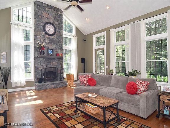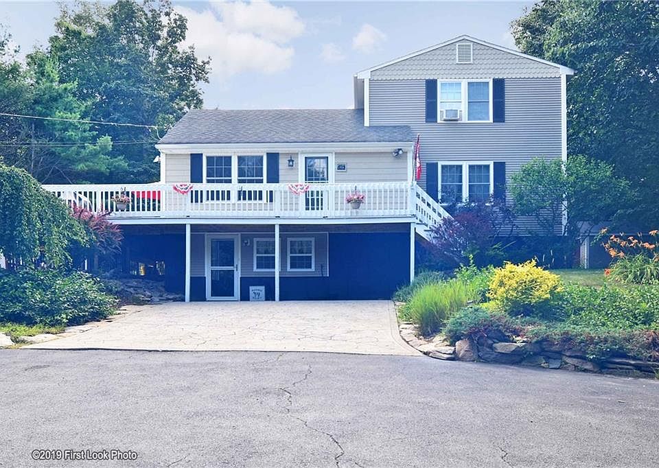 Looks can be deceiving and this spacious property is situated on two lovely acres of land and offers over 2500ft of well-appointed living space, 3 bedrooms & 2.5 baths. The stunning great room is a true highlight with walls of over-sized windows & a floor-to-ceiling fireplace adding extra wow-factor to this gorgeous space. The updated kitchen opens into both informal & formal dining areas with glass doors adding a touch of elegance. Additional features include a young roof & heating system, sprinkler system to maintain the mature landscaping, 1st floor laundry, 2 pellet stoves and a nicely finished lower level. The wraparound trex deck leads to the above ground pool which is the ultimate place to soak in this warm weather surrounded by the peace & tranquility this Northern RI location offers.