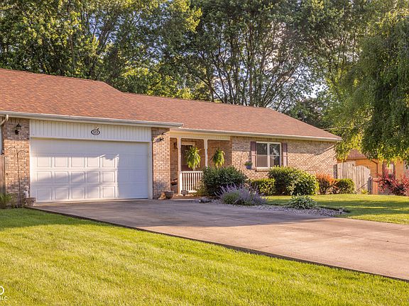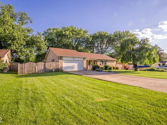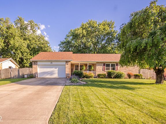 Welcome Home to this meticulously maintained 3 bedrooms, 2 full baths, abode that offers nearly 1,700 sq. ft. of comfortable living space. You'll be captivated by all this beautiful home has to offer, starting with the charming front porch complete with front porch swing. Spacious kitchen offers ample counter space and storage, open concept layout, and a large living room perfect for entertaining. All appliances in kitchen stay, including refrigerator, electric stove/oven, and dishwasher. Plus, this home boasts a nice sized family room with cozy fireplace and laminate floors throughout. The Primary bedroom is a serene retreat complete with an en-suite bath and huge walk-in closet. The backyard is an entertainer's delight with two patios, one is covered with composite wood deck and the other with a newer concrete pad, providing plenty of space for outdoor dining and relaxation. The privacy fence surrounds the backyard, and there is also a storage shed with loft, plus a fire pit. Situated in a quiet neighborhood in Pendleton Schools, and conveniently located near the interstate for easy access to shopping, dining and commuting. This house truly has it all!