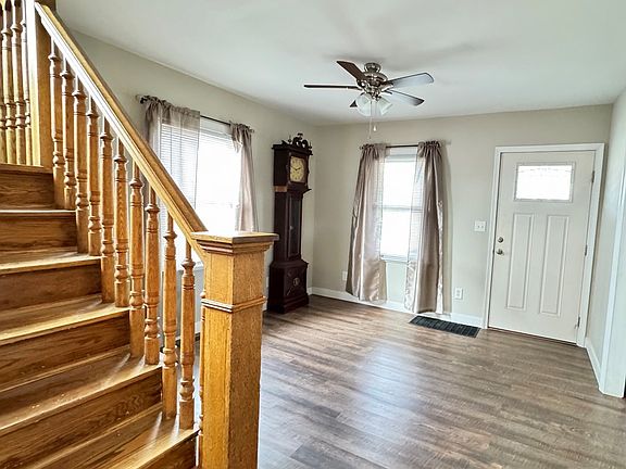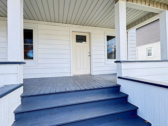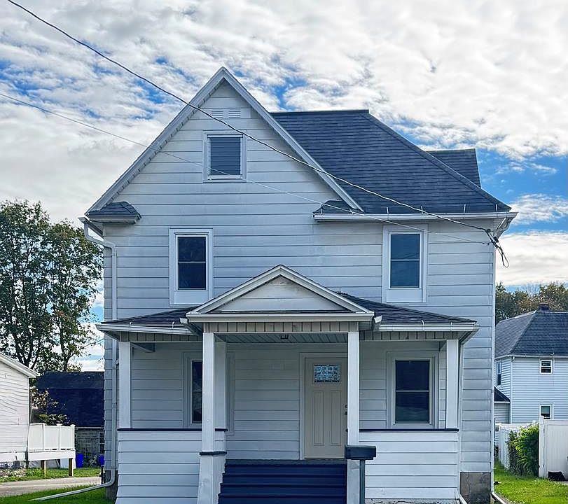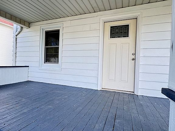 Recently remodeled, this property is move in ready with a fresh and inviting atmosphere. The kitchen is a delight and offers plenty of cupboard and counter space, and even has an area for dining. The front living room opens right into the large foyer and showcases a beautiful natural oak staircase. Brand new flooring and paint all throughout, hook ups for washer and dryer on first floor. Upstairs there are 3 spacious bedrooms all with ample closet space and a newly updated full bath. The walk up attic offers plenty of storage space as does the full basement. Enjoy the large covered front porch and partially fenced in backyard. This house is perfectly located within walking distance to the schools and hospital. Take a look, you won't be disappointed.