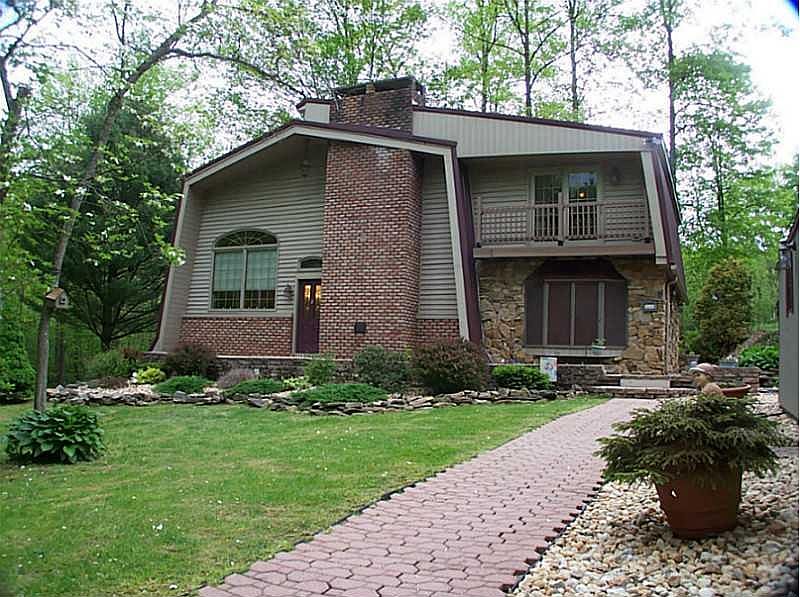 Escape to the heart of the Laurel Highlands! Unique mountain home on 12 private, wooded acres, stream running thru the property, all within a few miles of Fallingwater, Ohiopyle State Park, Seven Springs & Hidden Valley Resorts. Beautiful landscaping around the home, includes detached garage and storage shed. Remodeled gourmet style kitchen w/SS Appliances & granite counters, Media Room w/wet bar & granite counters, loft and so much more.