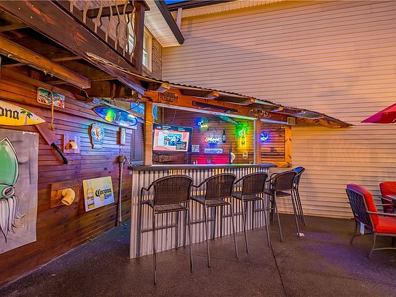 The finished lower-level game room and bar area have concrete counters, a small fridge, and whiskey tables that stay. Recent upgrades include a new roof (2022), furnace and AC (2024), and a hot water tank (2020).