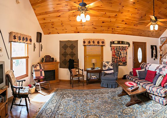 Come check out this beautiful mountain home that sits on over an acre of land. This home has been very well maintained and cared for. The home offers an open kitchen and living room floor plan. Check out the beautiful wood ceilings in the kitchen and living room. The home comes with 2 bedrooms on the main level along with a large bath. Upstairs will have one bedroom and one bath. You will have a front deck and a very nice double deck on the backside of the property. Must see this home to appreciate. All information deemed reliable but not guaranteed. Buyer/buyer's agent to verify all information.