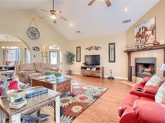 3.2 Acres with landscaped yard. Gorgeous, spacious home with 4 bedrooms, 2- 1/2 baths, formal dining, living room with beautiful wood floors and fireplace. Open kitchen with breakfast area. Separate office space. Large master suite with soaking tub and separate shower. Huge master closet. Water Softner. Back porch has a retractable awning for entertaining or just sitting outside. Large trees provide perfect shade. Property is fenced with electric gate. Garage is currently set up as a man-cave, but easily converted back to a 2 car garage. Room for a couple of horses. Easy access to Hwy 290 and local shopping. Airport is approx 35 minutes away. No HOA!