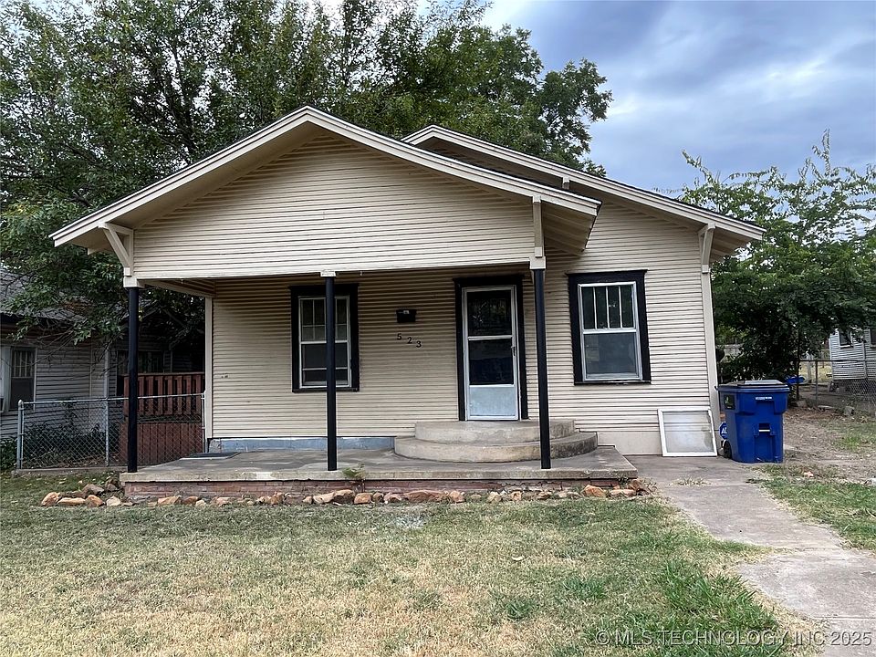This is a great, cozy and cute 2 bed 1 bath home. It features a fenced-in yard, small deck in the back yard and a covered front porch. Included are a refrigerator, oven/stove, window A/C and a gas wall heater. Tenant pays all bills including City of Ada water/trash/sewer, Summit gas and OG&E electric. Located in the Ada School District. Check out this property!!