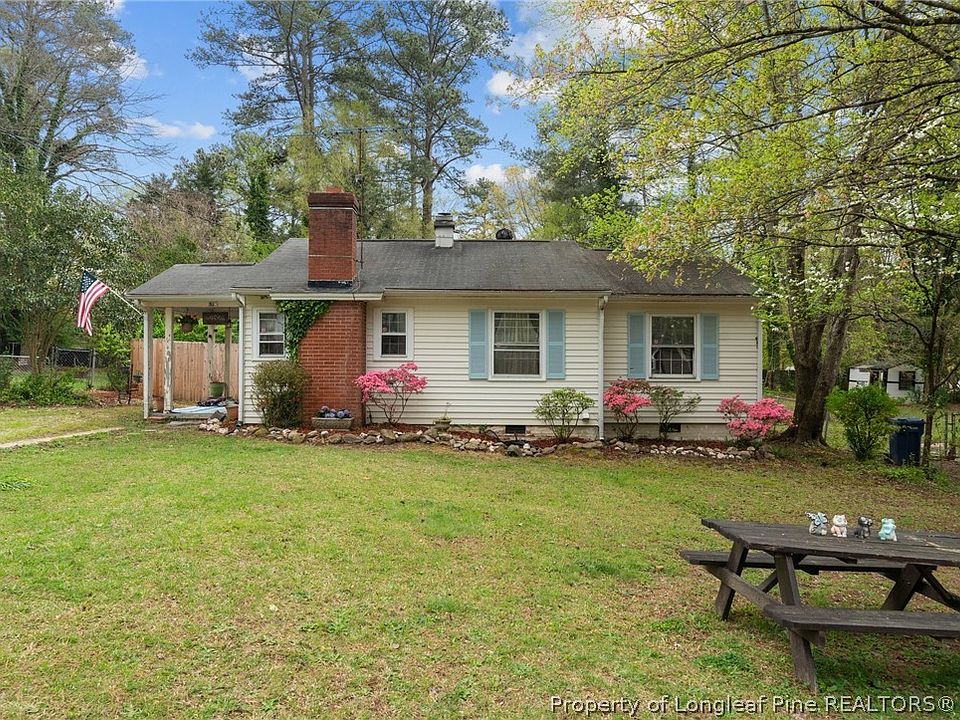 Here's a charming 1950s cottage style home that is ready for a new homeowner! Cute home with a large porch offering a great space to enjoy your morning coffee. This home welcomes you into the open floorplan with your living, dining, and kitchen areas. There are four bedrooms (one you have to access to get to the primary) giving you space to have the perfect nursery, home office, or hobby room. This home features original hardwood floors, a large farm-style kitchen sink, private entry into the primary and an attic fan, which is a great bonus & energy efficient addition for cooling and improving air quality. Also, boasting a beautiful front yard and privacy fenced backyard, leaving you with so many possibilities year round. Conveniently located to parks, greenways, and all the amenities downtown Sanford has to offer .. here it is! Check out this adorable home and make it yours! Home may need updates/modernizing, but it is move in ready! Agents not part of LLP, please CALL ST for access.