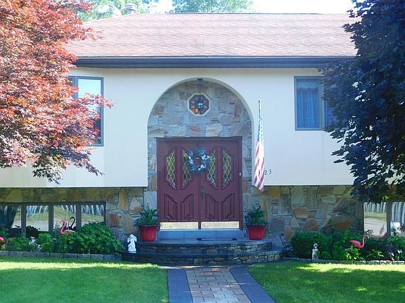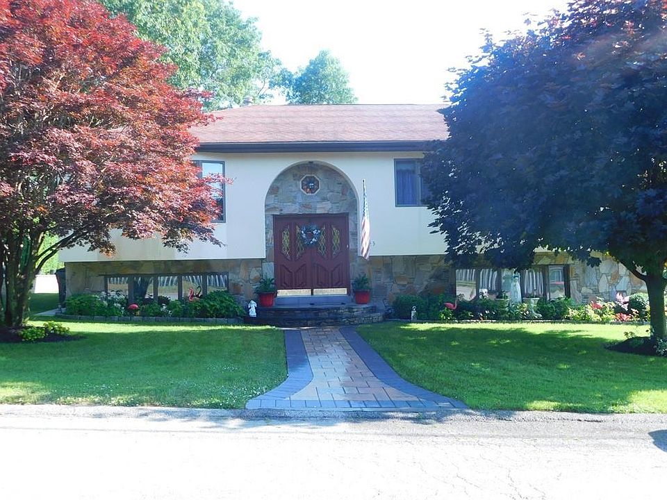 Meticulously maintained inside and out! Landscaped grounds brings curb appeal to this spacious Raised Ranch with attached garage, gorgeous stone work walk ways and patio overlooking appreciable backyard with sizable double French door shed that fits all the tools and toys. Enter through double doors and staircase leading to both levels. Open floor plan invites the living and dining area with sliding door access to outdoor patio perfect for gatherings, kitchen, 3 spacious bedrooms and considerable double sink vanity bathroom with extra storage. Lower level features eat-in kitchen with stainless steel appliances, spacious gathering room and full bathroom with a sit-in tub perfect for those with limited mobility. Plenty of off-street parking makes this home an entertainers dream.