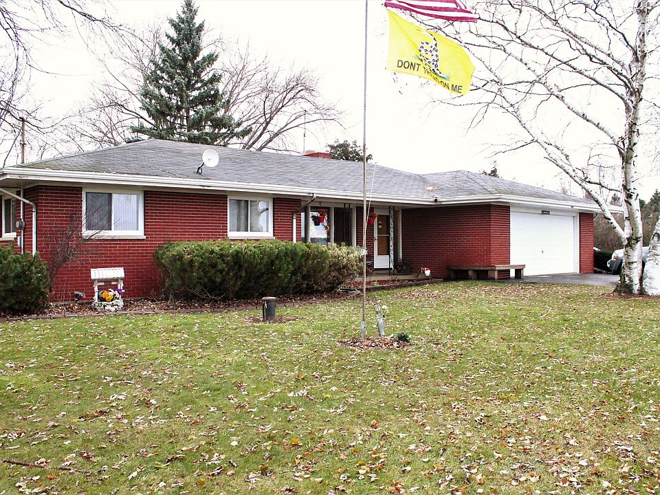 Welcome to the quiet life!! All brick 3 Bdrm 1.5 bath ranch on 3.2 acres of land. Beautiful hardwood floors with natural fireplace send this home over the top! Land includes a pole barn for extra storage or workshop.Pole Barn has 4 car stalls and is heated by wood burner!