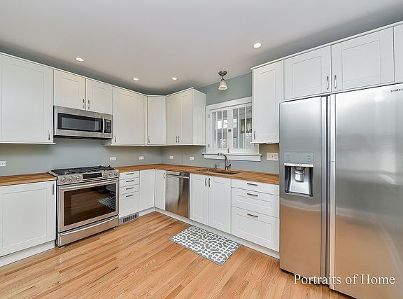 Situated on a picture perfect tree-lined street, this charming home is a commuter's dream - just a 7-minute walk to the train (35 minutes to the city). Sitting on an extra wide lot with a 66-foot frontage, timeless charm abounds with a sunny enclosed front porch, hardwood floors, many original doors and even the original doorbell (that still works)! NEW white kitchen with Samsung stainless steel appliances and butcher block counters, NEW 100 AMP electrical panel, spacious room sizes, large basement with family room and huge bathroom - 2.1 baths total! Other features include walk-in storage upstairs, large master bedroom with sky lights, large living room, formal dining room, deck and a fenced backyard plus a generous side yard. Enjoy this quiet neighborhood and coveted location close to town and just blocks to Whittier Elementary. There's also a bus stop down the street for Herrick Middle School and North High School. Welcome Home! SOLD AS IS - See Agent Remarks