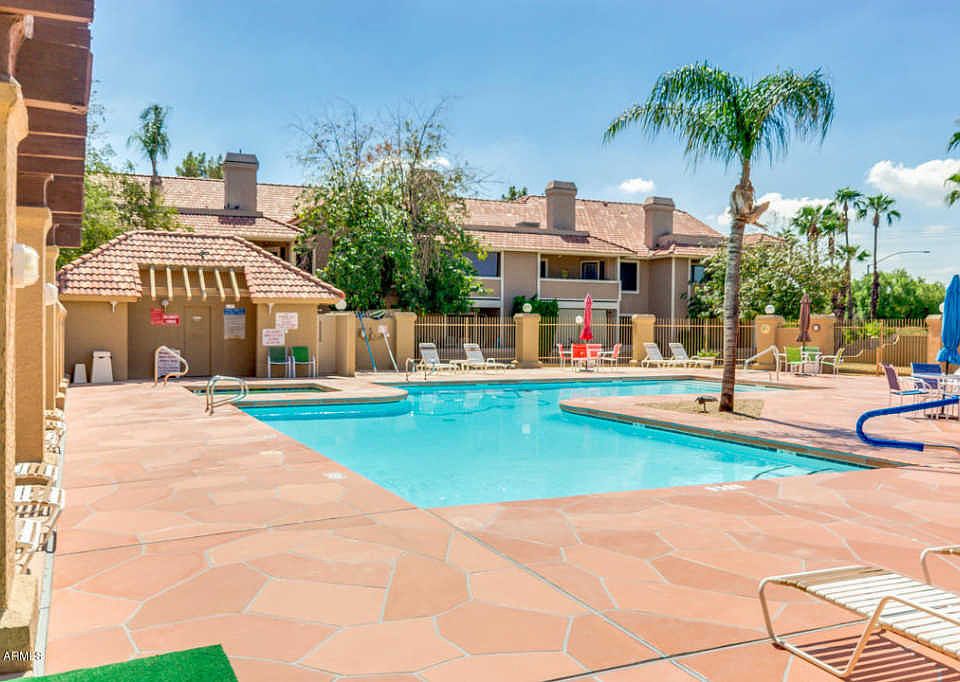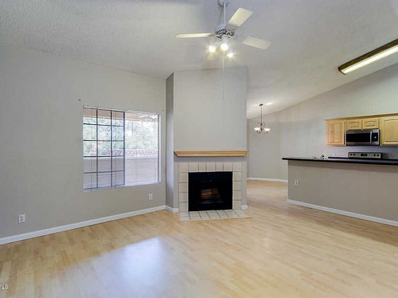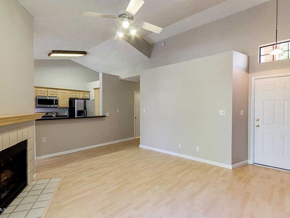 Beautiful 2 bed, 2 bath condo in Mesa featuring vaulted ceilings, dining and living area with a fireplace, gorgeous laminate flooring throughout, a cozy balcony with a lovely view, and designer paint throughout. You simply have to come see it to believe it! The gorgeous kitchen offers ample cabinet and counter space, matching stainless steel appliances, and a charming breakfast bar. Stunning master bedroom includes a private bath and spacious walk-in closet. Only a short walk away from the community's refreshing resort-style heated pool, this home simply has it all! Enjoy being surrounded by majestic views, award winning golf courses, and easy access to plenty of options for dining, shopping, entertainment, and freeway access. Don't waste any time and schedule a showing before it's gone!