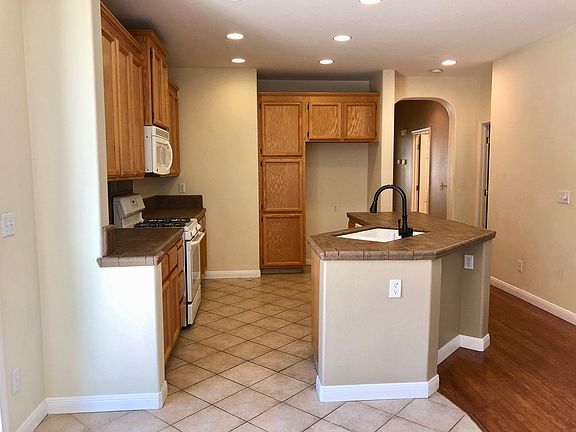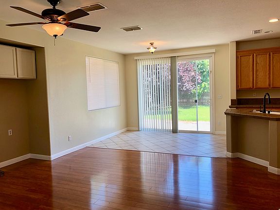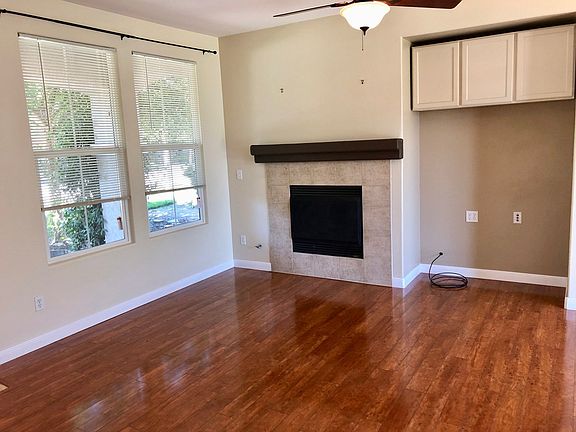 MOVE IN BONUS! $200 off first month's rent! This 3 bedroom, 2 bathroom home has 1,261 sq. ft. Built in 2007. Entry opens to great room, kitchen, and dining room. Great room has gas fireplace, ceiling fan and recessed lighting. Solid surface wood floors in great room, main bedroom and hallway. Tile in dining, kitchen, and bathrooms. Carpet in two bedrooms. Kitchen has built in microwave, gas stove, and bar with tile countertops. Laundry room has electric washer and dryer hookups and storage cabinets. Main bedroom and bathroom have two separate closets, dual vanity & tub / shower. Attached two car garage with good storage. Fenced backyard with lawn, patio and garden area. Yard care included. Enjoy nearby neighborhood parks. Credit score above 650 REQUIRED. NO pets. No smoking. Renter's insurance is required. Cross streets are Peach & Jensen. DRE# 01901101. All information is deemed reliable but not guaranteed and is subject to change.