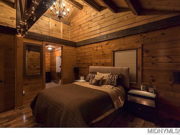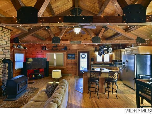 Your own private haven, situated on just under 1 acre, this beautifully crafted luxury log home has all the the modern amenities that discerning buyers expect. Its open floor plan boasts high ceilings & exposed beams, which are both warm and inviting to your guests. 14ft ceilings in the master bedroom speak excellence and clean comfort. Finished family room & office in basement. Walkout basement access to yard. Heated garage with power. Home is located minutes from Utica and Syracuse.