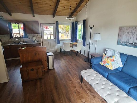 One Bedroom, one bathroom house in Cambria with new landscaped yard and updated throughout. The unit has an open layout with a large living room, dining room kitchen area featuring a wood burning and vaulted ceilings. Other features include vinyl plank flooring, dual pane windows, and stainless steel appliances. The house has a full bath with combo-shower tub, and stackable washer/dryer inside unit. Outside your will find new treks decking for both a front and rear deck, a newly landscaped patio area, automatic irrigation and monthly yard service included. Pet's considered. No Smoking. 1 year lease. Application required on file prior to viewing. Pet's considered. No Smoking. 1 year lease. Application required on file prior to viewing.
