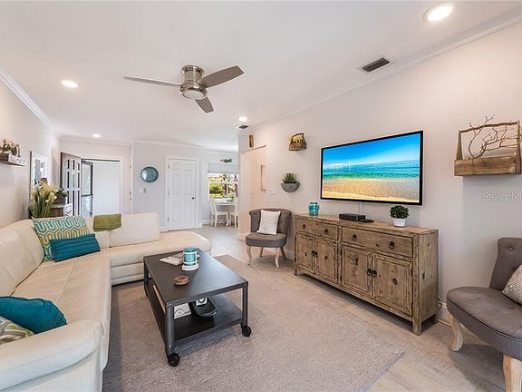Enjoy the pace of a laidback island lifestyle with deeded beach access in this completely updated 2nd floor residence in Longboat Key's established Covert I Community. Enhanced by peek-a-boo Sarasota Bay and Gulf of Mexico views, this 1BR unit is brimming with new features and upgrades, including new windows throughout, luxury vinyl plank flooring, shiplap details, recessed lighting, crown molding, baseboards and more. A recent renovation has opened up the bright, spacious living area to the kitchen, which includes all-new appliances, granite counters, glass tile backsplash, pantry with organizer, and separate dining area. The comfortably sized master suite boasts an abundance of natural light, window treatments, crown molding, and updated master bath with new shower, fixtures, vanity, flooring and lighting. Surrounded by lush landscaping to create a tropical island ambiance, Covert I is an intimate bayside community with 140' fronting Sarasota Bay. Residents have access to a host of exceptional amenities, including a heated pool with an outdoor shower, spacious deck outfitted with chairs and tables perfect for community gatherings, a newly rebuilt fishing pier and kayak launch to explore Sarasota Bay. The HOA is self-managed by owners who are interested in a well-maintained complex. Monthly rentals allowed. Pet policy: one dog maximum weight 35lbs.