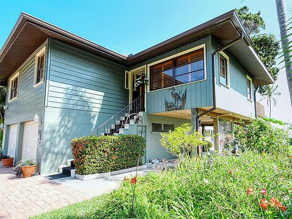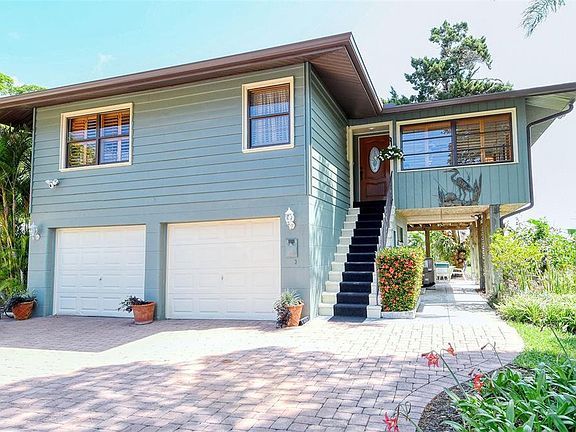 Full Sarasota Bay views will be enjoyed from this elevated 2 bedroom single family home in popular Covert on Longboat Key with no maintenance fees. Spacious 2 car attached garage. Nice screened porch and outside shower. There is a day dock for your boating pleasure. Beach access right across the Street.