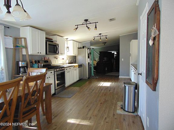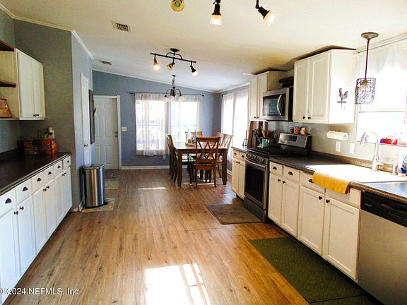 Welcome home to this charming 3-bedroom, 2-bathroom updated manufactured home, nestled on almost 3 acres of picturesque land. With a durable metal roof that adds both style and longevity, this property is a perfect blend of comfort and functionality. Step inside to discover a thoughtfully updated interior with modern conveniences and a warm, inviting atmosphere. The well-appointed kitchen boasts contemporary appliances and ample cabinet space, making meal preparation a delight. The open floor plan seamlessly connects the living and dining areas, providing a perfect space for entertaining family and friends. The expansive acreage is entirely fenced and cross-fenced, creating a secure haven for your horses and goats to roam freely. Outdoor living is a delight with a dedicated space for your chickens, ensuring a constant supply of fresh eggs. The expansive 30x40 garage provides ample space for storage, hobbies, or a workshop - a true asset for any homeowner. With the Jennings State Forest practically in your backyard, the opportunities for outdoor adventures are endless. Whether it's exploring nature trails, horseback riding, or simply enjoying the peaceful ambiance, this property offers a unique blend of rural serenity and modern convenience. Welcome to your new home in the heart of tranquility!