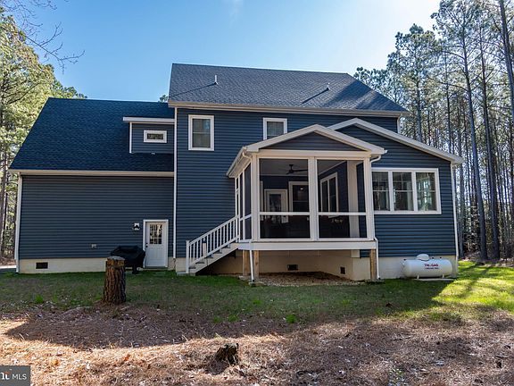 Fabulous Custom Craftsman with water access in Heron Harbor! Situated on a private 3 + acre lot, this 4 bedroom built in 2019 by Charles " Wiggs" Brohawn features well designed plan with open and private living spaces. 9'+ ceilings, open floor plan great for entertaining integrating great room, kitchen and living spaces. Spacious gourmet cooks kitchen boasting quartz counters, large island, custom cabinets island, stainless appliances, 5 burner gas cooktop with hood , double wall oven, huge walk in dry pantry and butlers pantry with wine bar. Great room with corner fireplace. Separate dining space surrounded by windows for great light! Primary suite with oversized walk in shower, dual vanities and large walk in closet. Private spaces includes separate bonus room and private home office- fiber optic high speed internet. Rear screened porch, inviting front porch and oversized 2 car garage rounds out this offering. Water access with community pier on Fishing Creek. This is a must see!