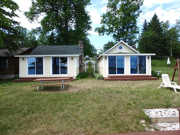 Two adorable country cottages side-by-side! Well kept, clean and move-in ready. Each cottage is about 630sqft. The north cottage has hardwood flooring; 1 bedroom and 1 bath with loft for additional sleep space. The south cottage has a cobble stone fireplace; 2 bedrooms and 1 bath. Some tongue & groove paneling and two 6' sliders in each cottage for a fantastic and open view of the lake. Great atmosphere with lakeside decking between the cottages offers the ideal lake experience with family & friends. Dock & hoist included.