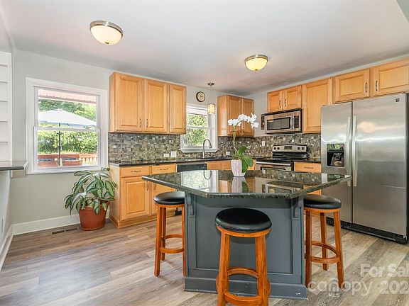 Beautifully updated brick mid-century ranch nestled on nearly half an acre, boasting a private tree-lined yard with a spacious deck for outdoor enjoyment. The kitchen features granite countertops, stainless steel appliances, a center island, and a breakfast bar, seamlessly flowing into both the dining room and family room. A formal living room with a cozy wood-burning fireplace adds warmth and charm to the home. Convenient features include a laundry room with cabinets, an attached carport. Just minutes away from 85, making it an easy commute to uptown and airport. Don't miss this opportunity to own this charming home with a large yard in a tranquil setting.