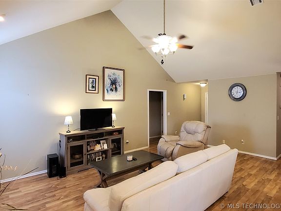 Adorable home in Sand Springs and Angus Valley School System. Open, Split floor plan with vaulted ceilings, wood style floors, wood burning fireplace. Backyard complete w/covered patio-ceiling, pull down shades & a water features. Enjoy gatherings with friends and family in your beautiful landscaped yard. Come see yourself in this home.
