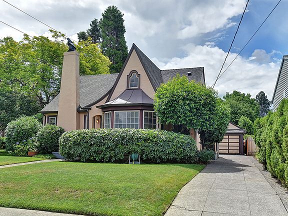 Adorable Tudor Bungalow in Southeast Portland is the Perfect Cosmetic Fixer! Built in Cabinets and Original 1920s Character throughout the Home. Hardwood Floors. Large Kitchen. Wood Burning Fireplace in Living Room. Upper Level has Bedroom and Nook! Lower Level is Ideal Man Cave or Kids' Crash Pad. Oversized Detached Garage. Double Lot includes Front Lawn and Back Yard with Play Structure, Above Ground Pool, and Large Shop!
