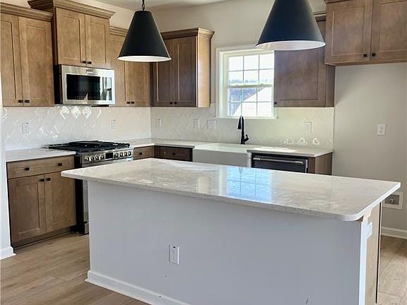 This single-story Bates plan features three bedrooms and two bathrooms. The floorplan offers a split bedroom layout to give the primary bedroom plenty of privacy. The kitchen offers upgraded stainless-steel appliances and peninsula countertop that can fit 2 barstools for extra seating. This plan is perfect for all stages of life and could be yours today! Call and ask about our amazing incentives!