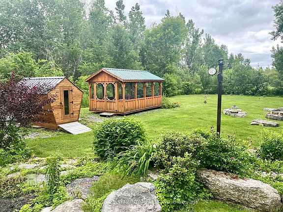 This charming 2-bedroom, 1-bath home is full of character and cozy touches, perfectly located just 20 minutes from downtown and close to all your everyday amenities. Inside, you'll find hardwood floors in the living room and dining room, adding warmth and timeless appeal. Outside, the large, beautifully landscaped backyard is a true highlight featuring vibrant flowers, mature trees, raspberry bushes, and a variety of apple trees that make the space feel like your own private oasis. Enjoy the new front deck (completed Fall 2024), a lovely three-season gazebo for entertaining, and a relaxing wood-burning sauna perfect for unwinding after a long day. This sweet home has so much to offer, both inside and out book a showing today!