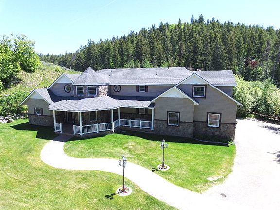 Stunning 2 story home nestled in the trees of Pocatello's Moonlight Mountain. Upon walking into the home, the Tuscan finishes throughout bring out the 20 foot height of the great room. The kitchen features granite surfaces, staggered alder cabinets, double ovens, and a large center island. With over 6600 total sq feet, each room is very spacious and accommodating. Formal sitting room, main floor office, basement den and oversized storage area, theater room, large entertainment area with additional kitchen, large bedrooms, and a huge 2nd story family room that could easily become more bedrooms if desired. The home has attention to detail throughout, from crown molding, oversized master shower with separate jetted tub, elevator to all levels, extra wide hallways and doors, fountain, covered patio with gas fire pit and covered wrap-around porch, solid wood doors, grand staircase, curving path, park-like yard, and more. The home is on over 6 acres of tree covered land, and is about as maintenance free of an acreage property that you will find. Not only do you have a secluded estate, but you are only minutes from town and freeway access.