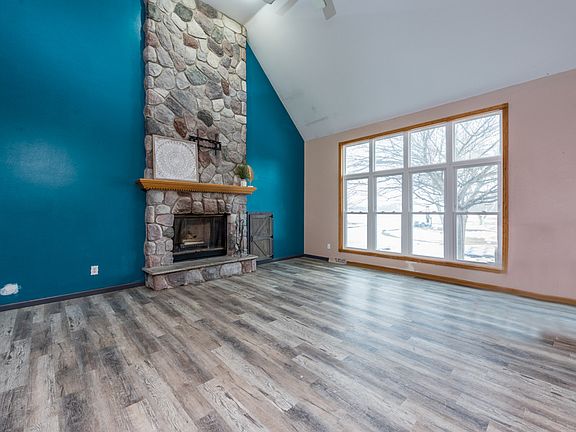 Spacious 1.5 story sitting on a peaceful 7.55 acre lot, zoned A2. Inside you are greeted by the soaring vaulted ceilings in the living room, accented by the floor to ceiling custom stone fireplace. Open concept, large eat-in kitchen, with island, pantry closet & stunning views out of the new back triple slider! Main floor master is in the mist of a renovation. Owners have expanded the master bath & it's ready for your finishing touches. The bonus room would make a great home office, additional bedroom, playroom, or whatever would fit your needs. Upstairs you will find 3 additional, bedrooms, roomy full bath, & loft w/balcony to downstairs. The full basement is partially finished. Large back deck offers tranquil views. The new 24x24 barn is ready for goats, chickens, horses, etc. Welcome home!