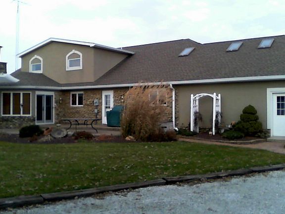Fantastic curb appeal that will not disappoint you. Gorgeous stucco and stone wrapped 4 bedroom home with many amenities situated on 3.87 acres. From the foyer entry, masterful craftsmanship captivates your attention. Open concept, great room with fireplace and built in entertainment center, formal dining area surrounded by windows, and breath-taking kitchen with beautiful custom cabinetry, breakfast bar/island and walk-in pantry. Magnificent owner's suite and spacious laundry room located on the main level. The hobby room with skylights and stairway to the oversized 2 car garage and large closet with shelving could be a 5th bedroom. The 22x15 basement is unfinished. This total electric home offers geothermal heat with electric baseboard as a back up on the second level and heated tile floors. The pole barn with oversized doors offers a workshop, paint room and storage area with ample space for 5th wheel, boats, etc. Don't miss the opportunity to see this jewel!