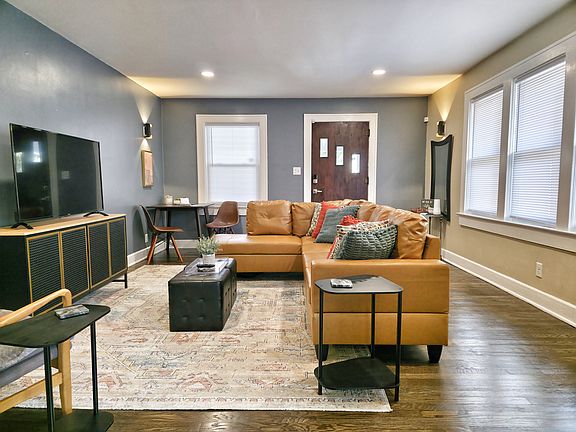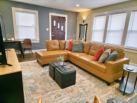 Experience luxury living in this beautifully restored Irvington half-duplex! This 2BR/2BA home corner lot restoration boasts historic charm with a contemporary flair overlooking the revitalized Pleasant Run Parkway trail. Enjoy a private courtyard, back patio, and covered porch. Inside, discover hardwood floors, custom tile, a gourmet kitchen with new appliances, including a brand new washer and dryer in the basement laundry. The exquisitely finished lower level offers an open-concept office, sitting room, primary suite complete with its own custom bathroom with a spacious custom-tile walk-in shower. No investment spared throughout with high-end finishes including custom lighting, ceramic tile floors, refinished original wood flooring, and plush pad and carpeting in the lower. Location! Location! Location! Walk to Irvington shops, restaurants, schools, Starbucks, and the Festival of Lights. Available for 12-24 month lease, unfurnished as listed. The home has been a furnished rental for the past year so furnishings are optional for an additional monthly fee. Monthly rent includes water/sewer; resident pays gas/electric/cable/internet. Plenty of street parking in front. One small pet allowed with $200 fee. Non-smoking without exception! Minimum 650 credit score and 3x rent verifiable income required. $50 application fee. Credit, rental history, employment, and background check. Visit website for application information. Avail March 1st move-in. Requires full month security, first months rent, pet dep, and verified utilities transfer to move in. Corporate leasing is welcome. Home is fully setup and ready to go for furnished! Ask agent/owner for more details. Owner pays water and sewer. For furnished tenant, optional utilities provided w/ negotiated lease. For unfurnished, tenant pays gas, electric, internet, and tv services.