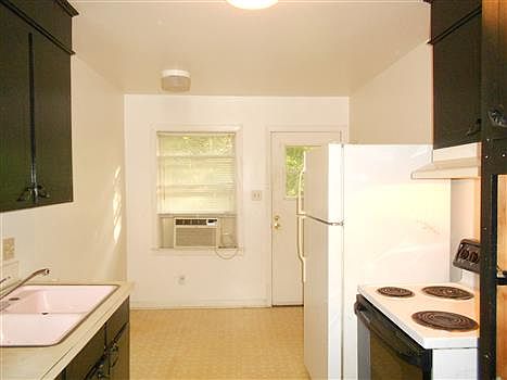 One bedroom, one bathroom duplex, hardwood floors, gas wall furnace, range, refrigerator,washer and dryer connection, water included in rent.